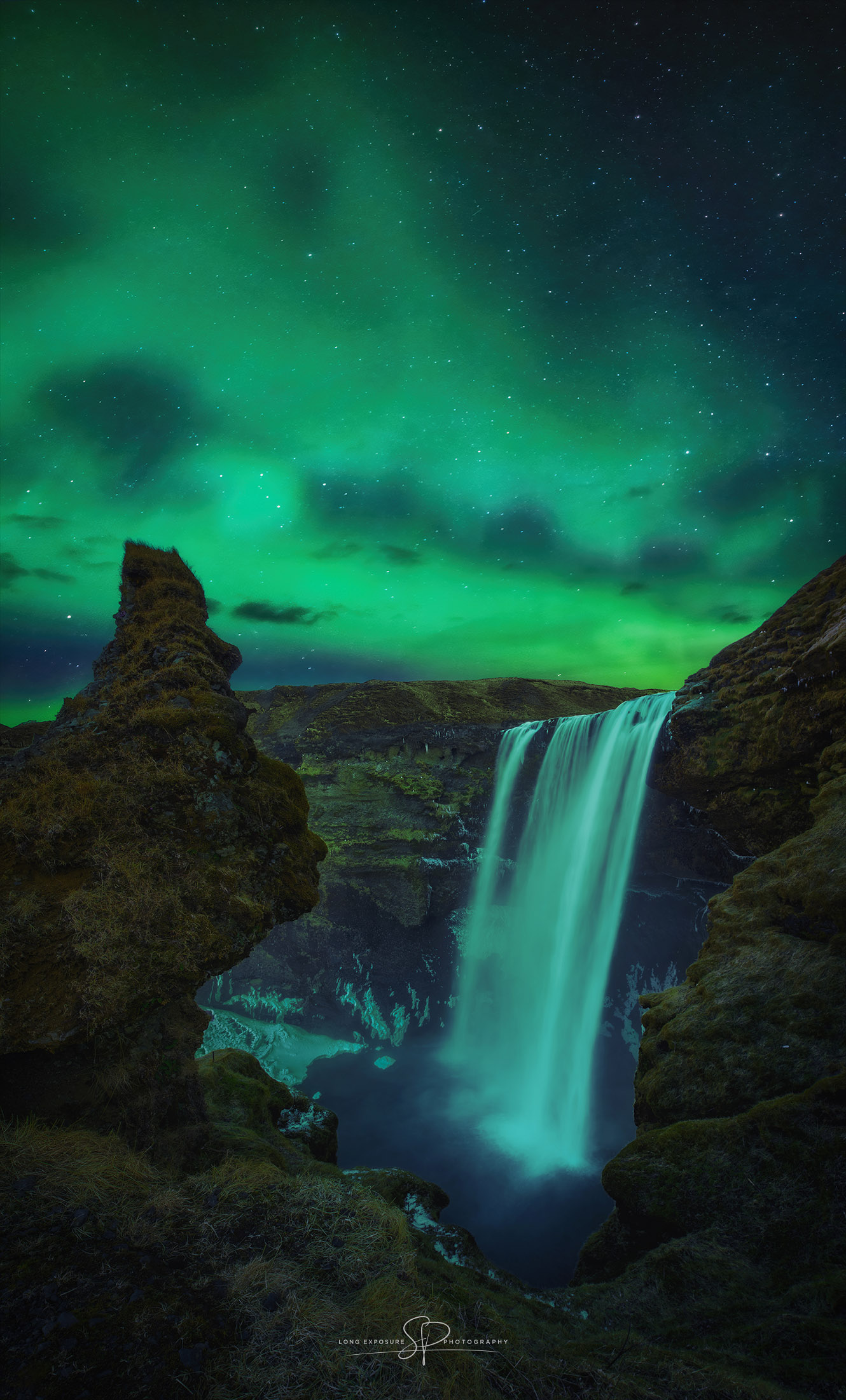 Skogafoss Northen Lights