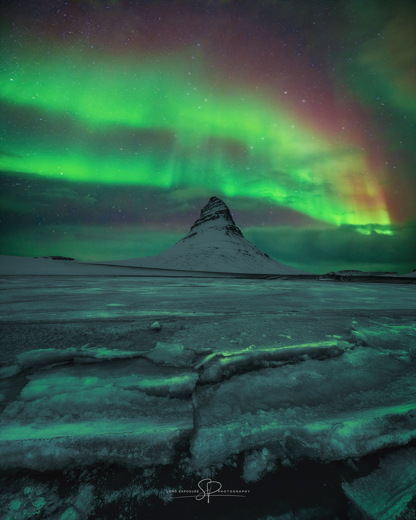 kirkjufell icy Northern Lights