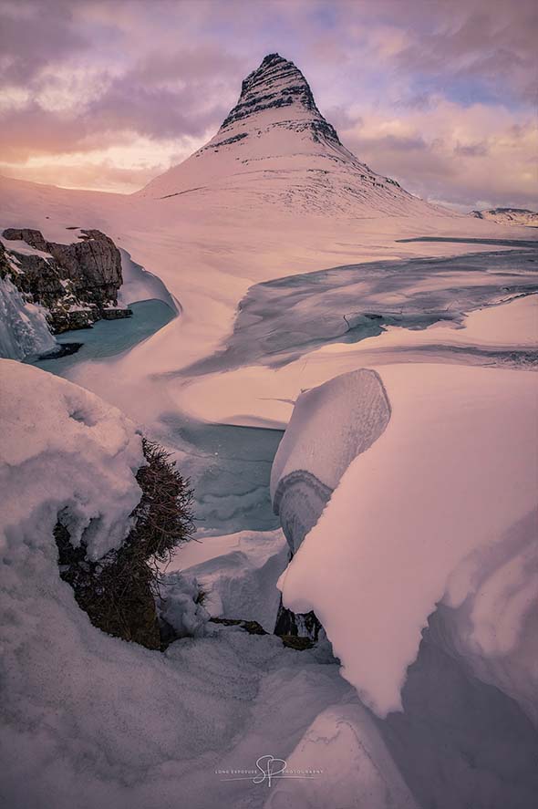 kirkjufell icy sunset